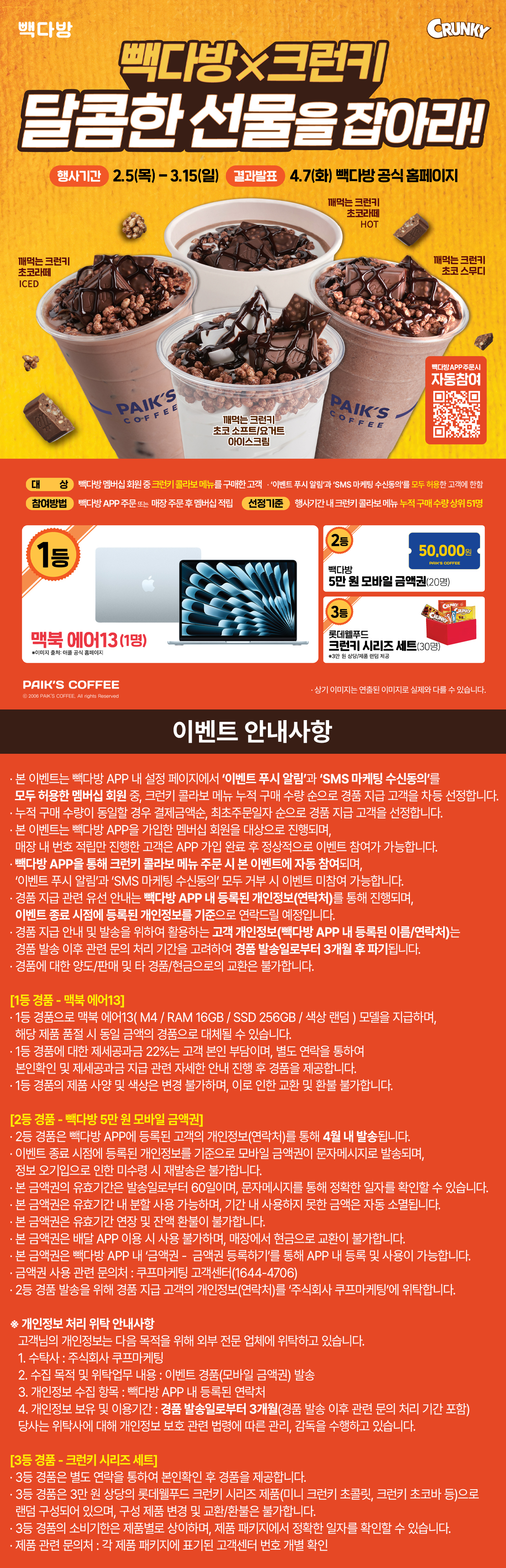 [빽다방X크런키] 크런키 음료 먹고 달콤한 선물을 잡아라! (2/5~3/15)