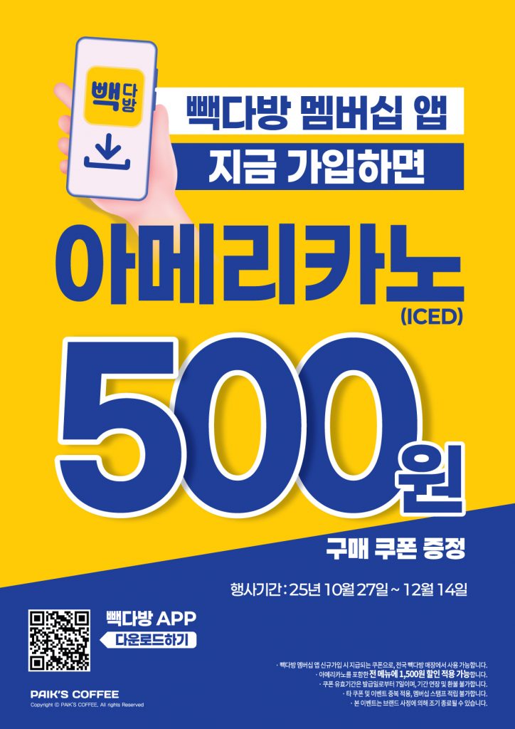 [빽다방 앱 신규가입 이벤트] 가입하고아메리카노(ICED) 500원에 만나보세요!(~12/14)